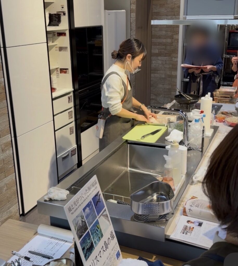 Leiクッキングでは、クリスマス島の塩 と クリナップ株式会社 のタイアップ企画として、クリナップ・キッチンタウン・東京 にて料理レッスンを実施しました。
