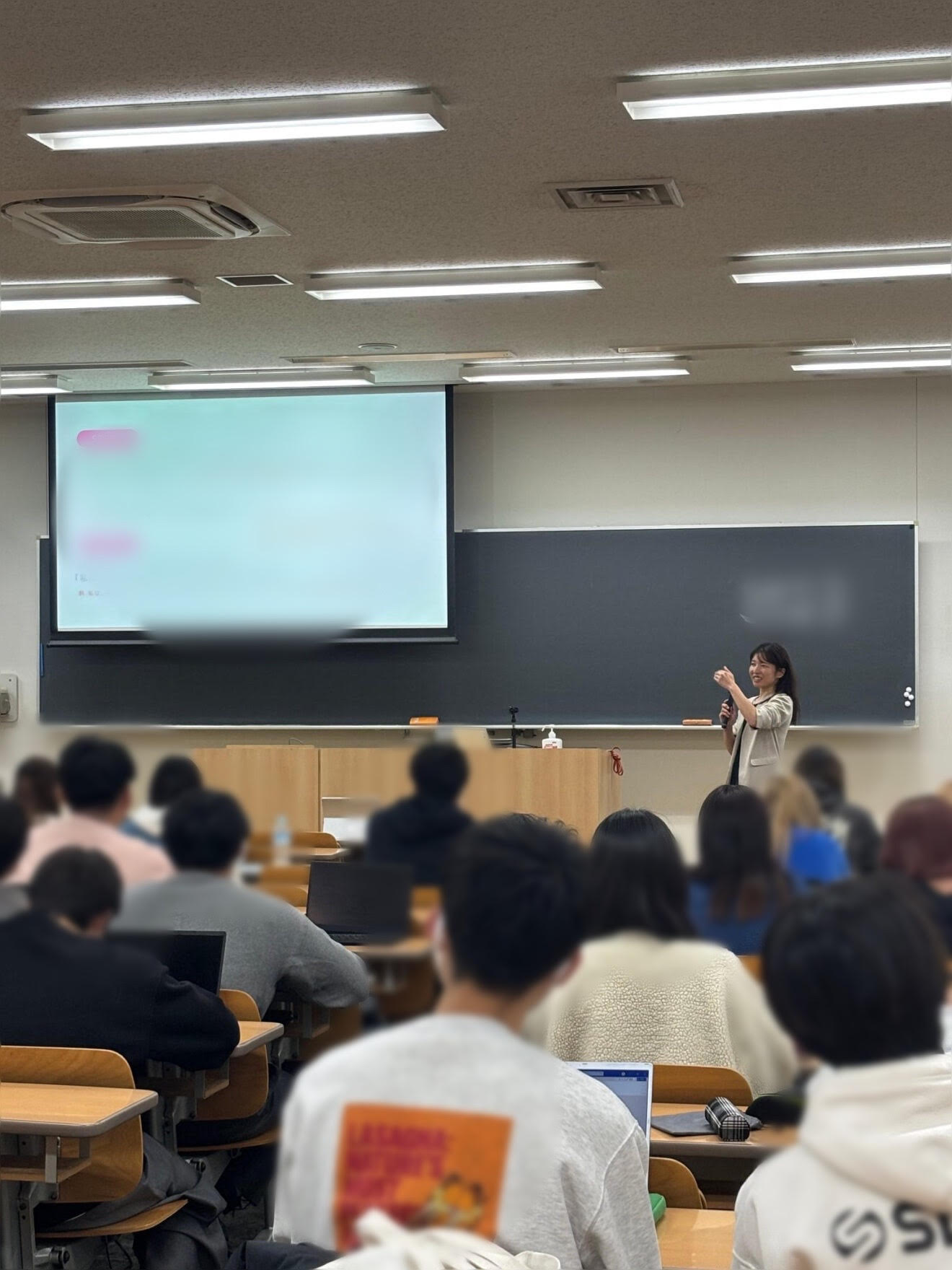 約120名ほどの学生のみなさんに向け、“家庭料理”や“スパイス”を通して得てきた経験や学びをお話しし、